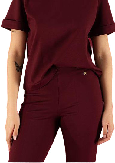 Pantalone bordeaux dal taglio semplice, in tinta unita e dallo stile essenziale.